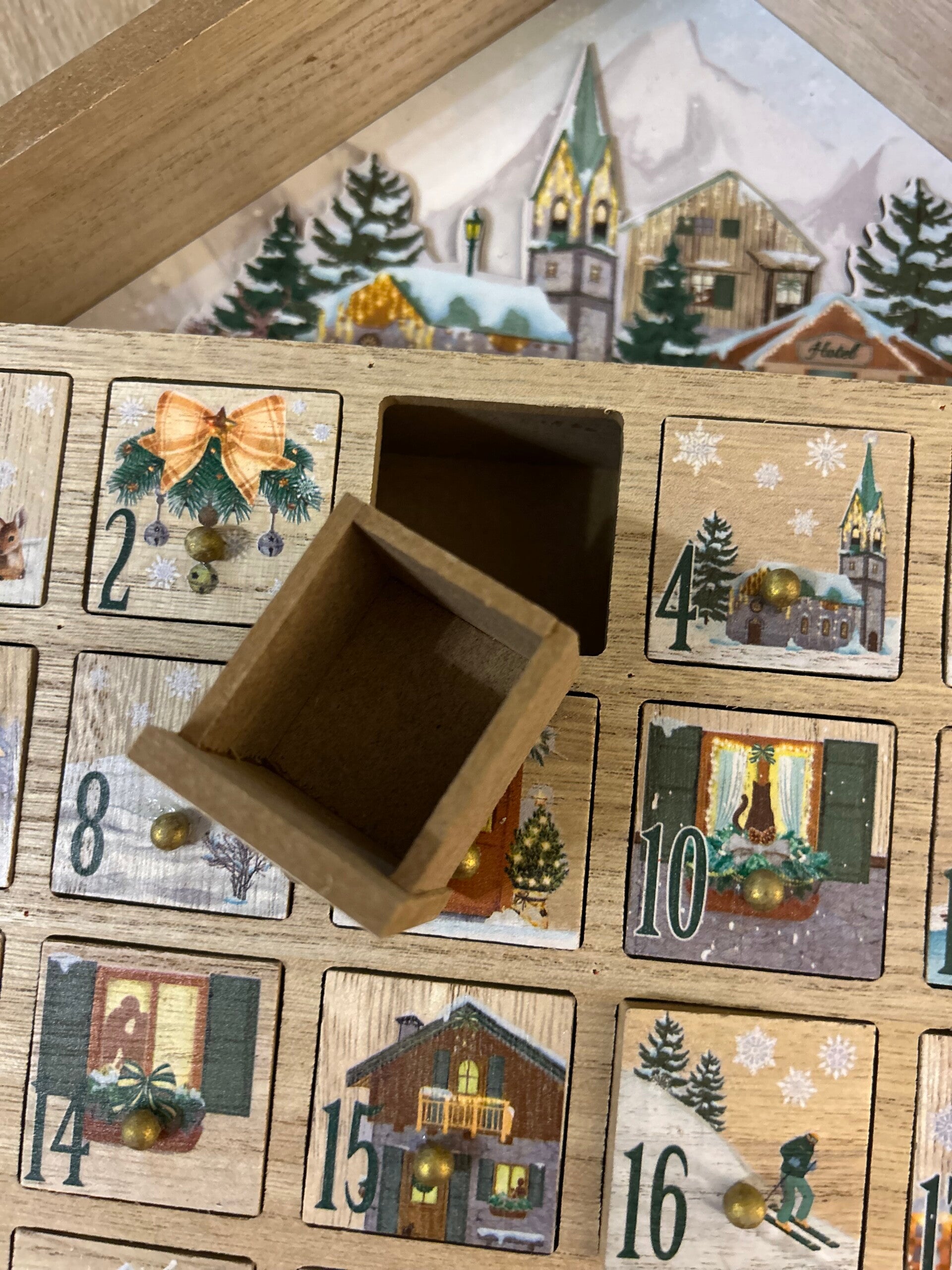Calendario dell’Avvento in legno “Magico Villaggio di Natale” 🎄✨